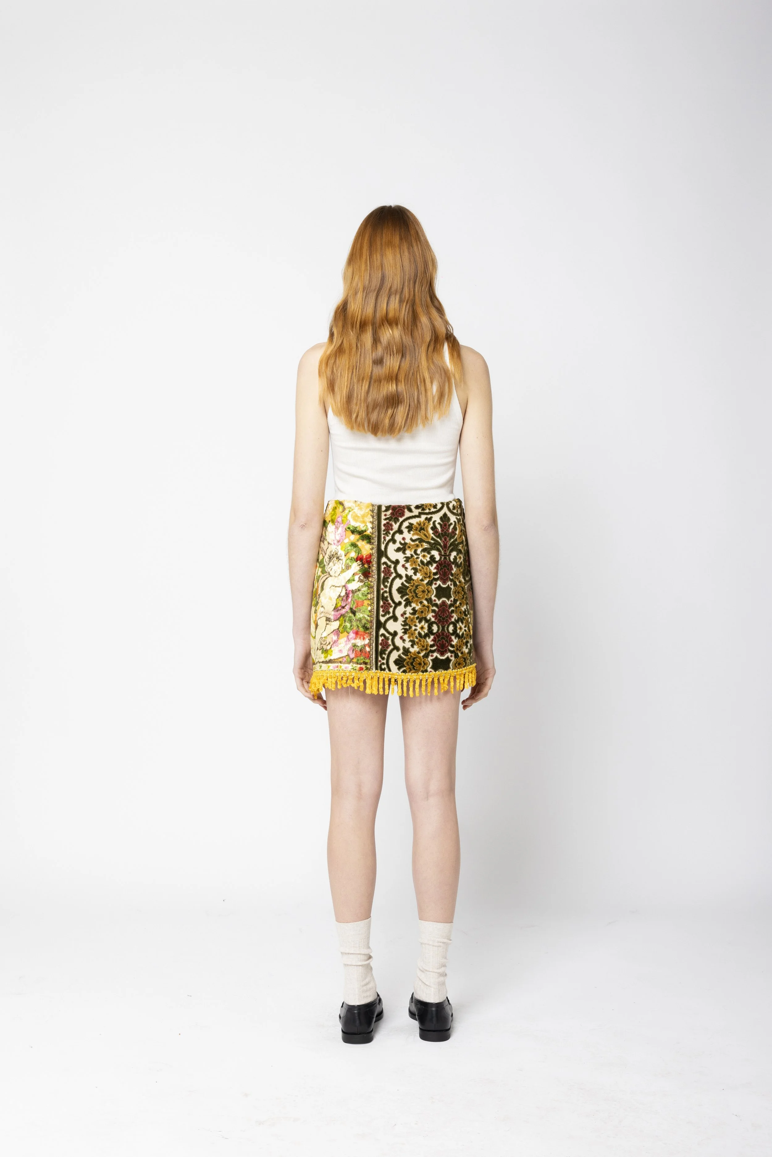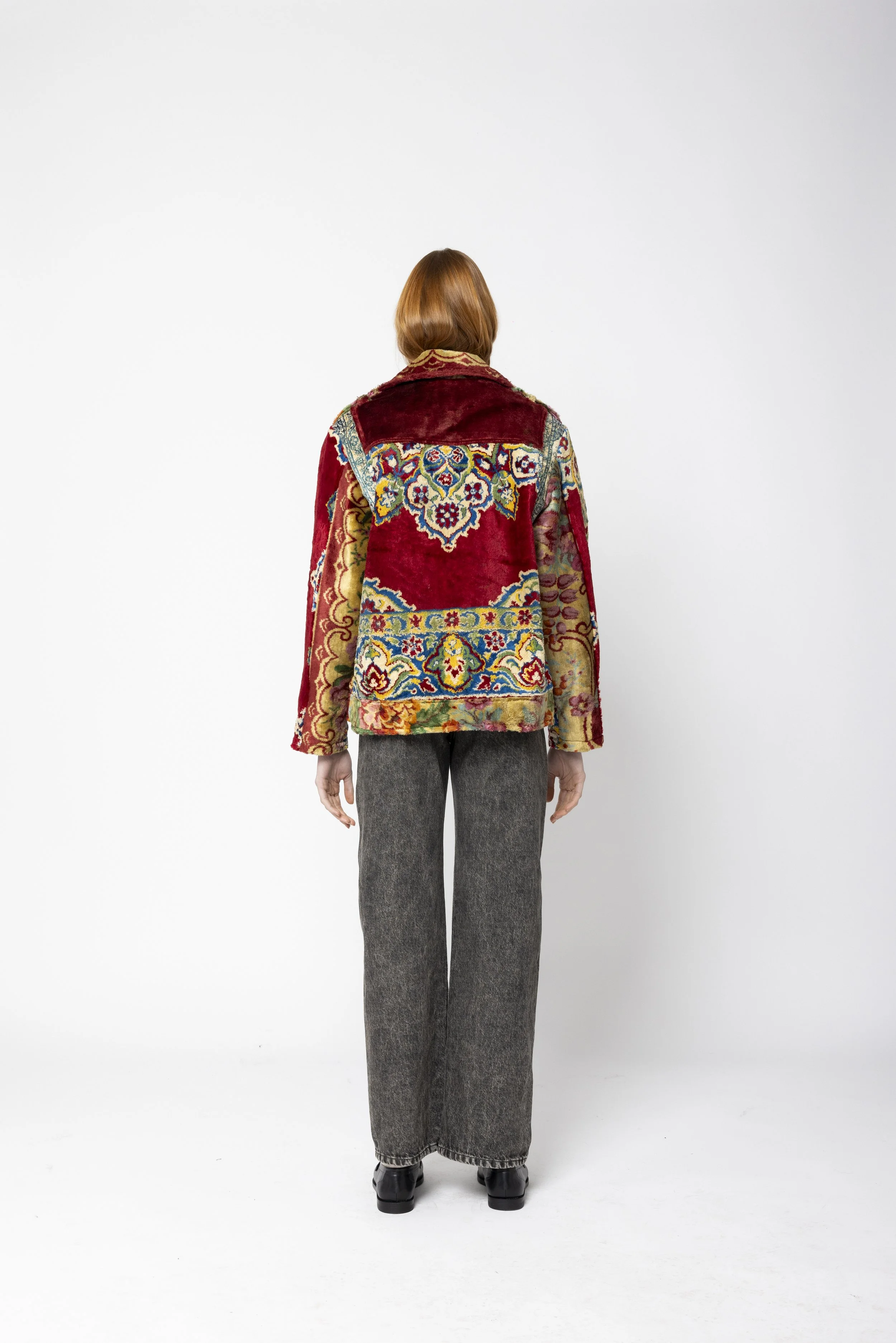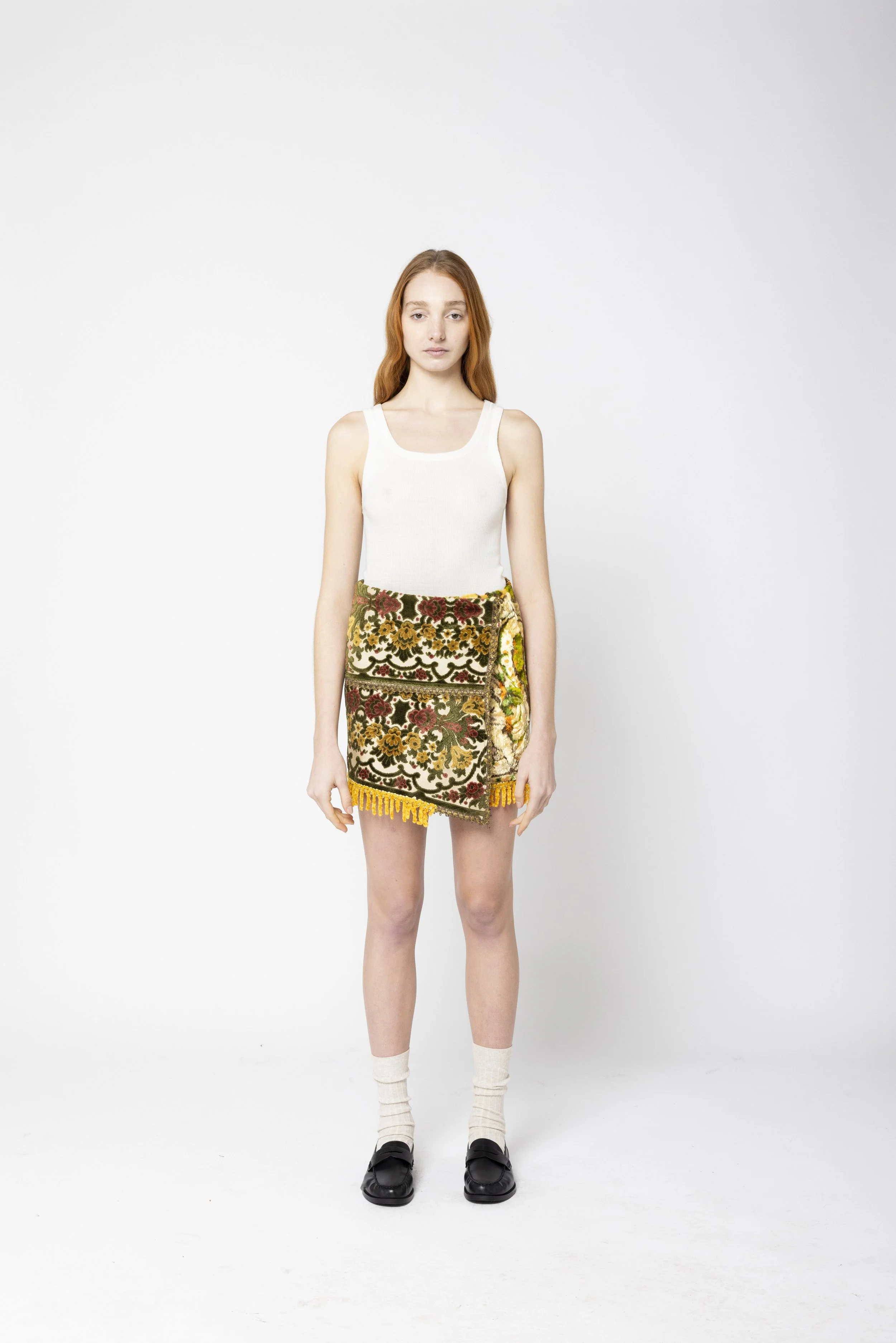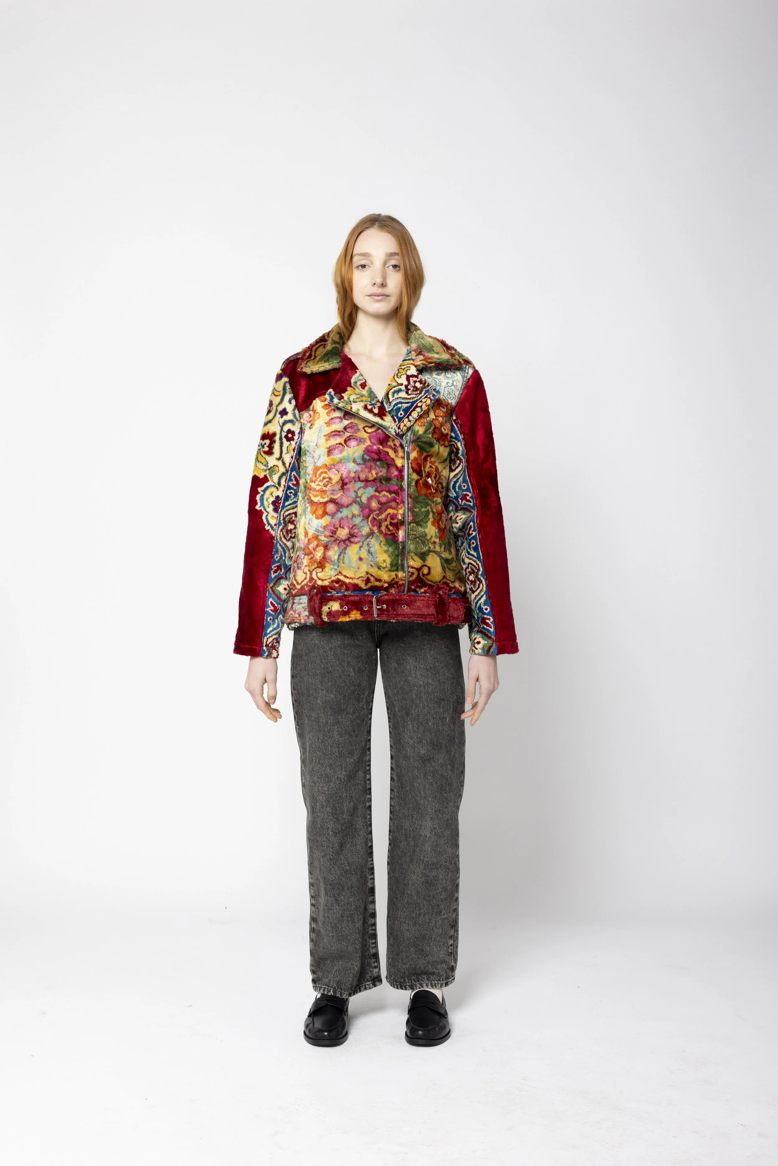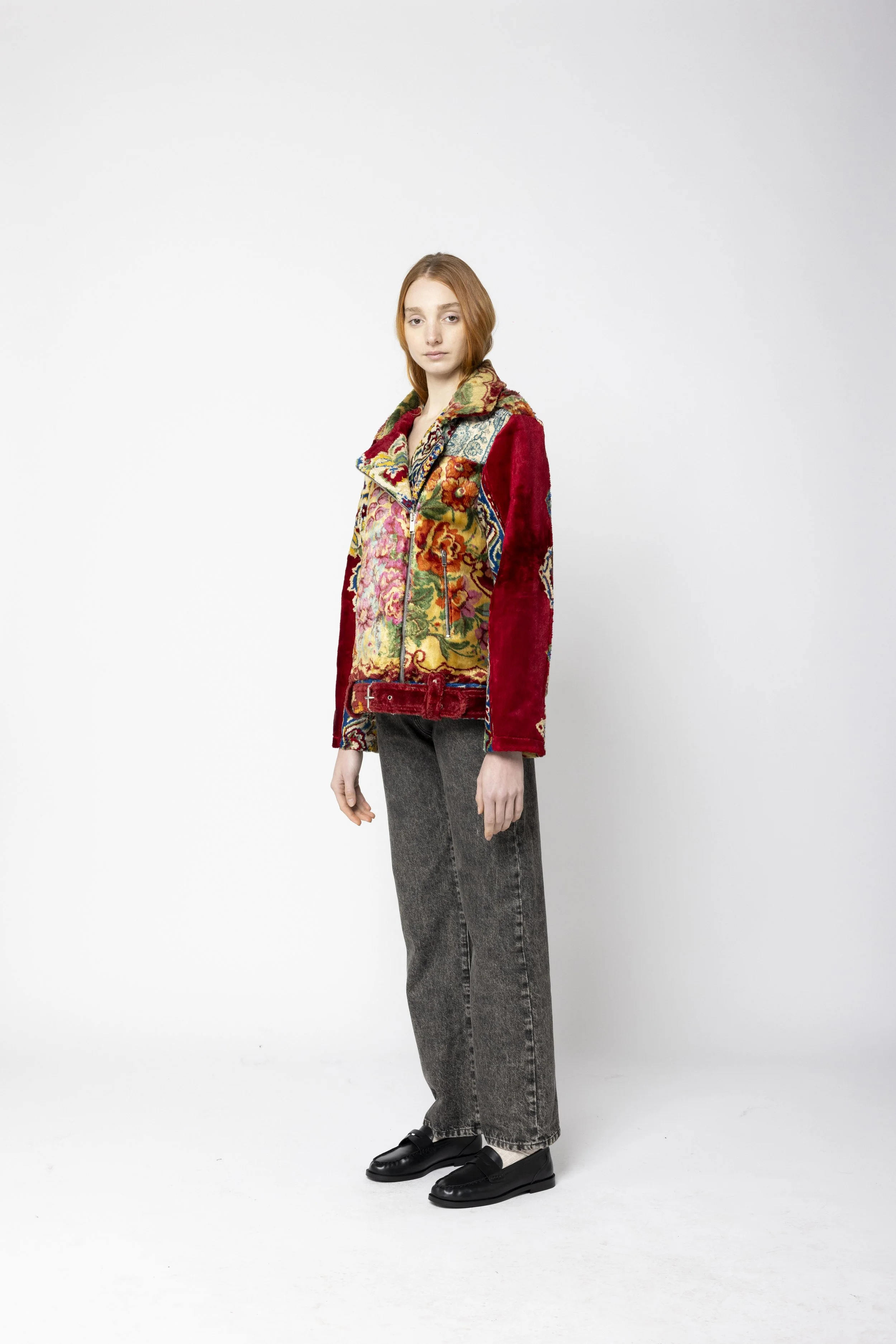 All the knitwear is handmade, the knot is the way we assemble the excess of the yarns we upcycled for creating multicolor patterns. The patchwork items are hand assembled with upcycled vintage clothes, and all the embroidery details in the collection are hand made crochet.
